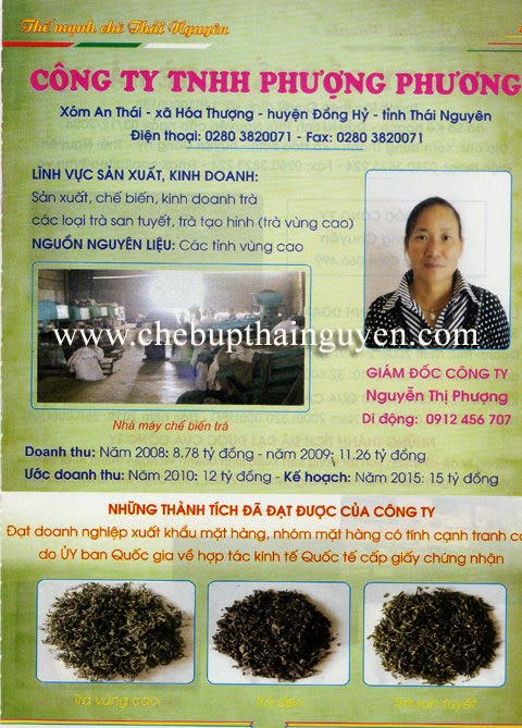 Địa chỉ Công ty chè Phượng Phương: Xóm An Thái – Xã Hóa Thượng – Huyện Đồng Hỷ – Tỉnh Thái Nguyên