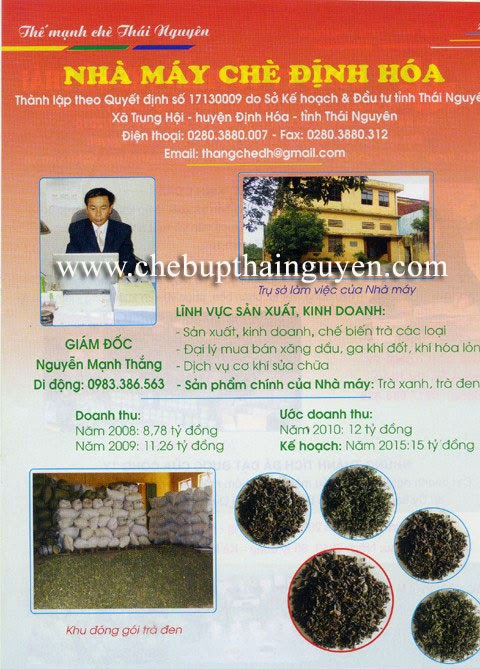 Địa chỉ nhà máy chè Định Hóa : Xã Trung Hội – Huyện Định Hóa – Tỉnh Thái Nguyên