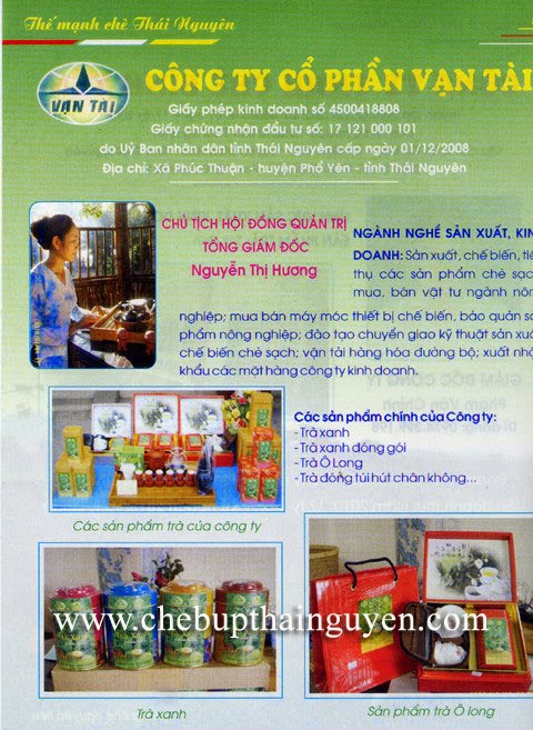 Địa chỉ Công ty cổ phần chè Vạn Tài: Xã Phúc Thuận – Huyên Phổ Yên – Tỉnh Thái Nguyên