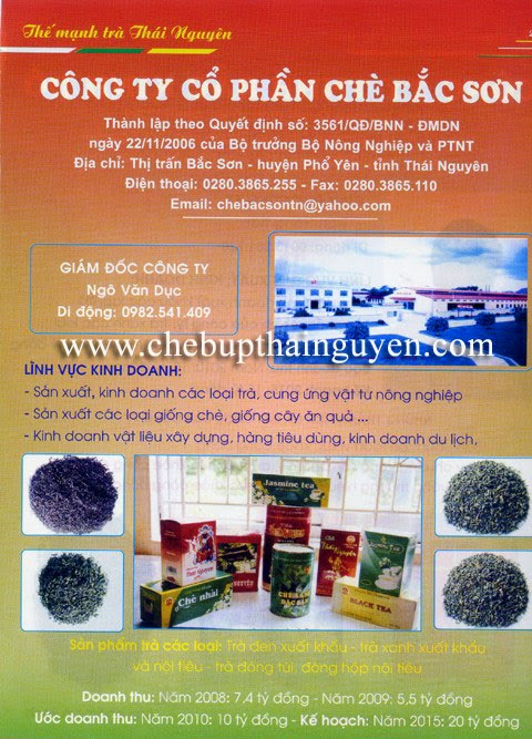 Địa chỉ công ty cổ phần chè Bắc Sơn: Thị trấn Bắc Sơn – Huyện Phổ Yên – Tỉnh Thái Nguyên
