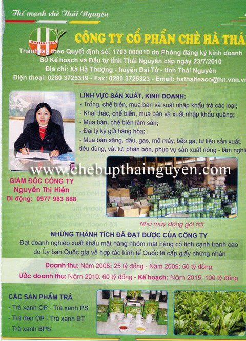Địa chỉ công ty cổ phần chè Hà Thái: Xã Hóa Thượng – Huyện Đại Từ – Tỉnh Thái Nguyên